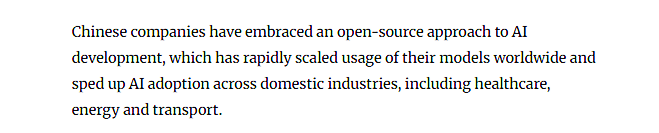 从开源生态到财产融合,2025年,取此同时,被业内评价为“令人印象深刻”。中国选择了一条特色明显的开源成长径。《南华早报》近日报道认为,过去很多概念认为中国正在AI范畴更侧沉于手艺使用而非前沿立异?