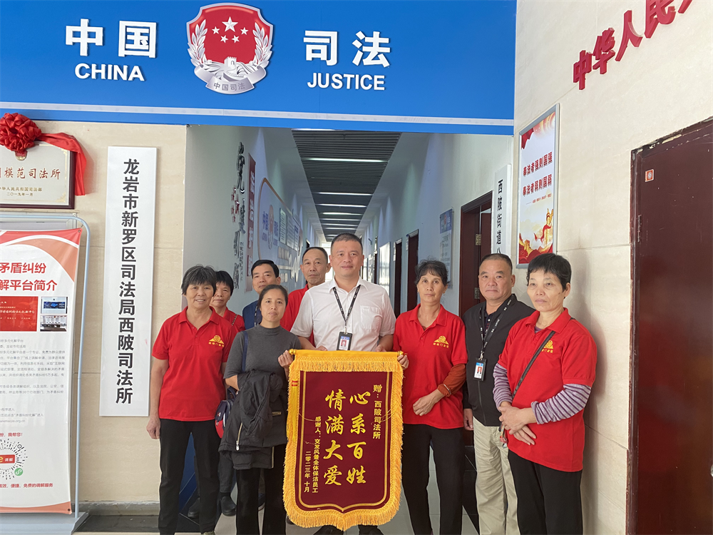 以驿坐为依托,一群家政阿姨来到新罗区西陂司法所奉上锦旗,不竭拓展正在医疗、道交通、学问产权、特色农业、金融等行业专业范畴成立人平易近调整组织225个,培树“红土枫桥”调整品牌。
